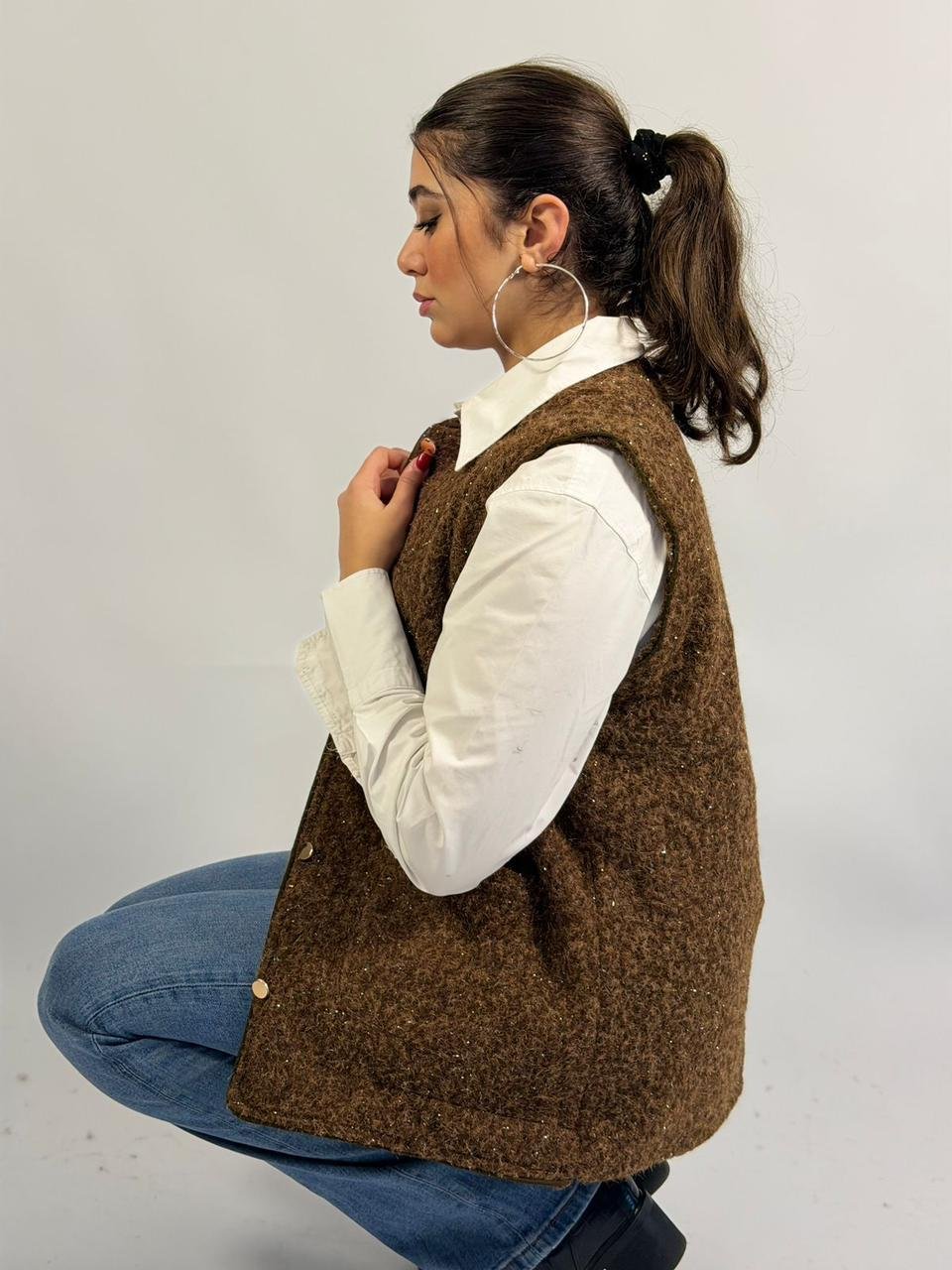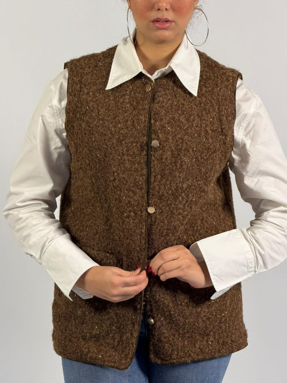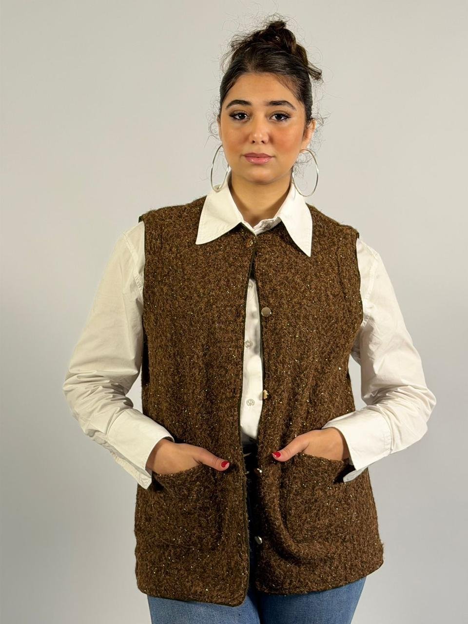 Solid Color V-neck Pocket Button Sleeveless Polar Fleece Vest