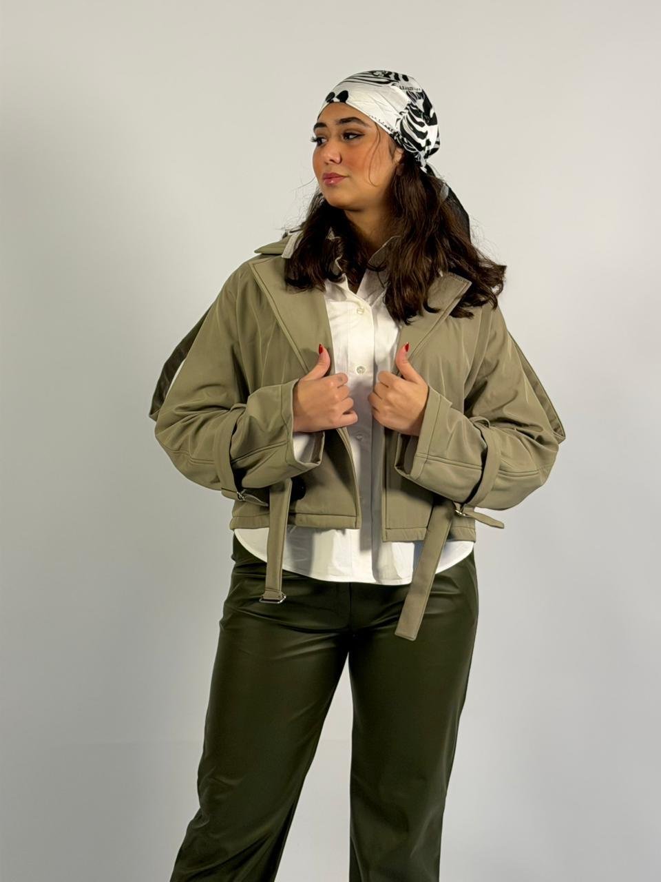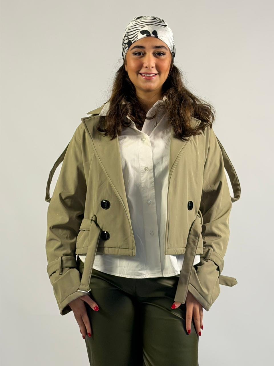 Beige Cropped Double-Breasted Trench Jacket