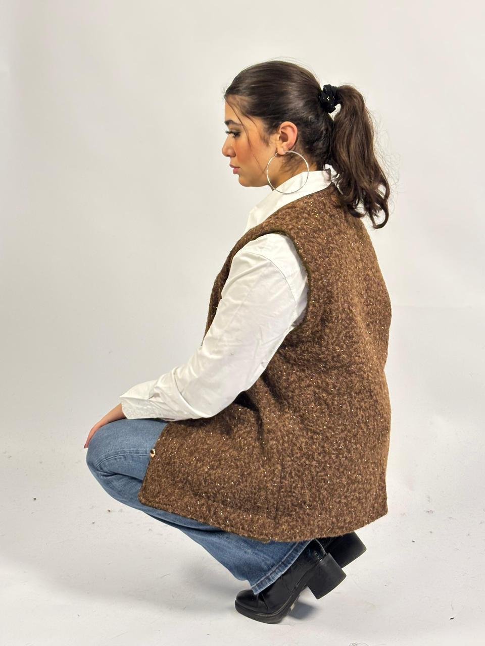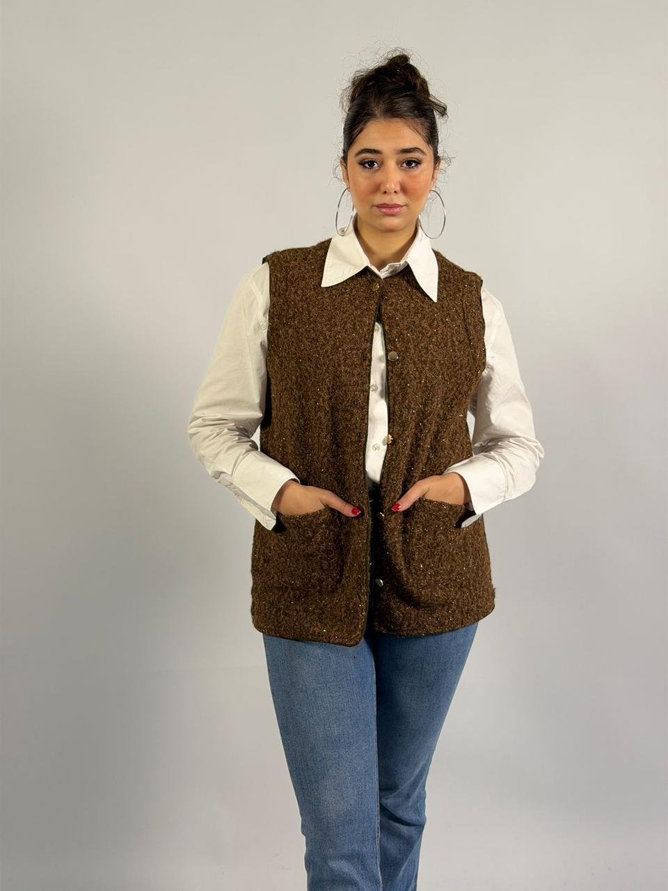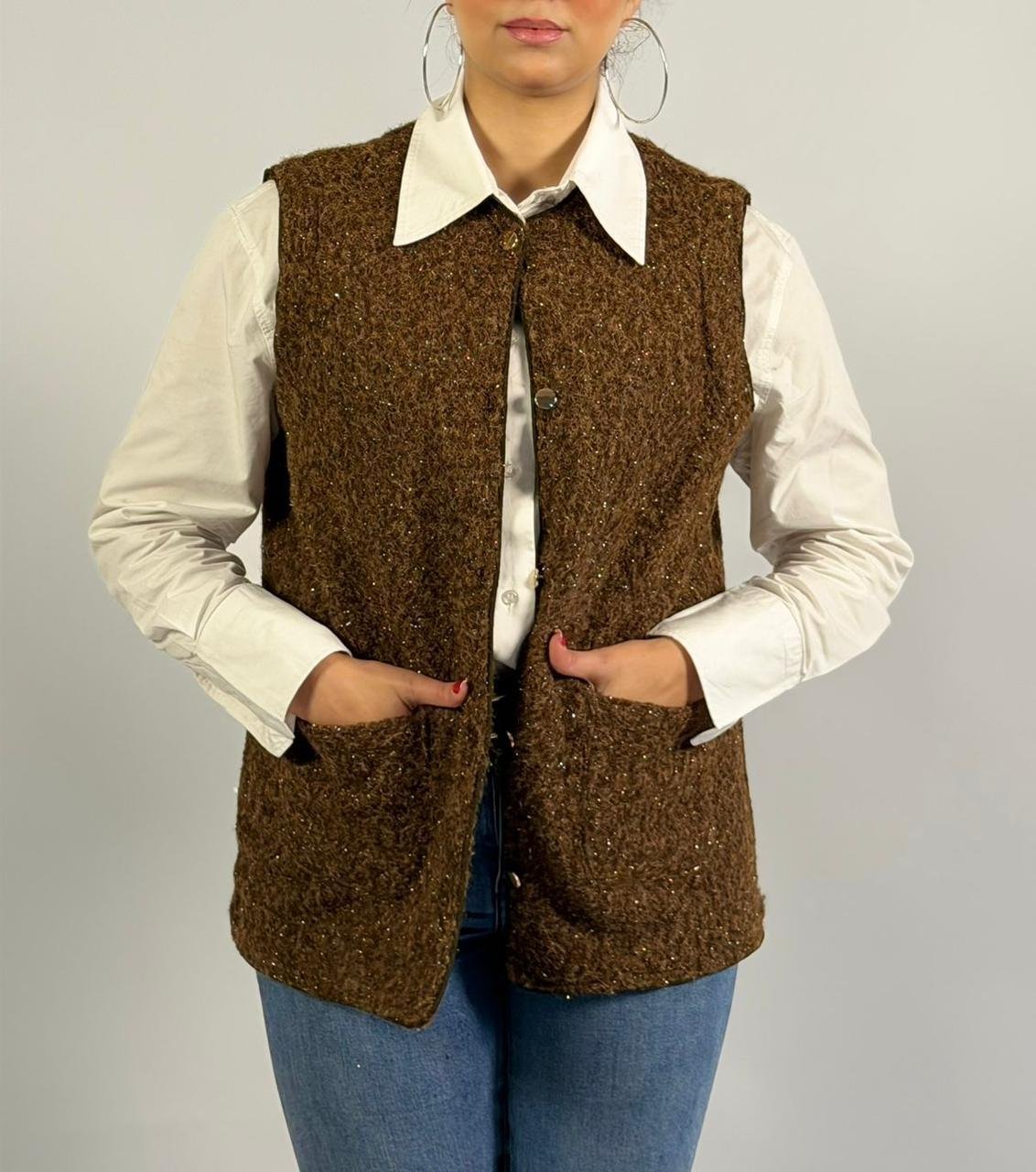 Solid Color V-neck Pocket Button Sleeveless Polar Fleece Vest