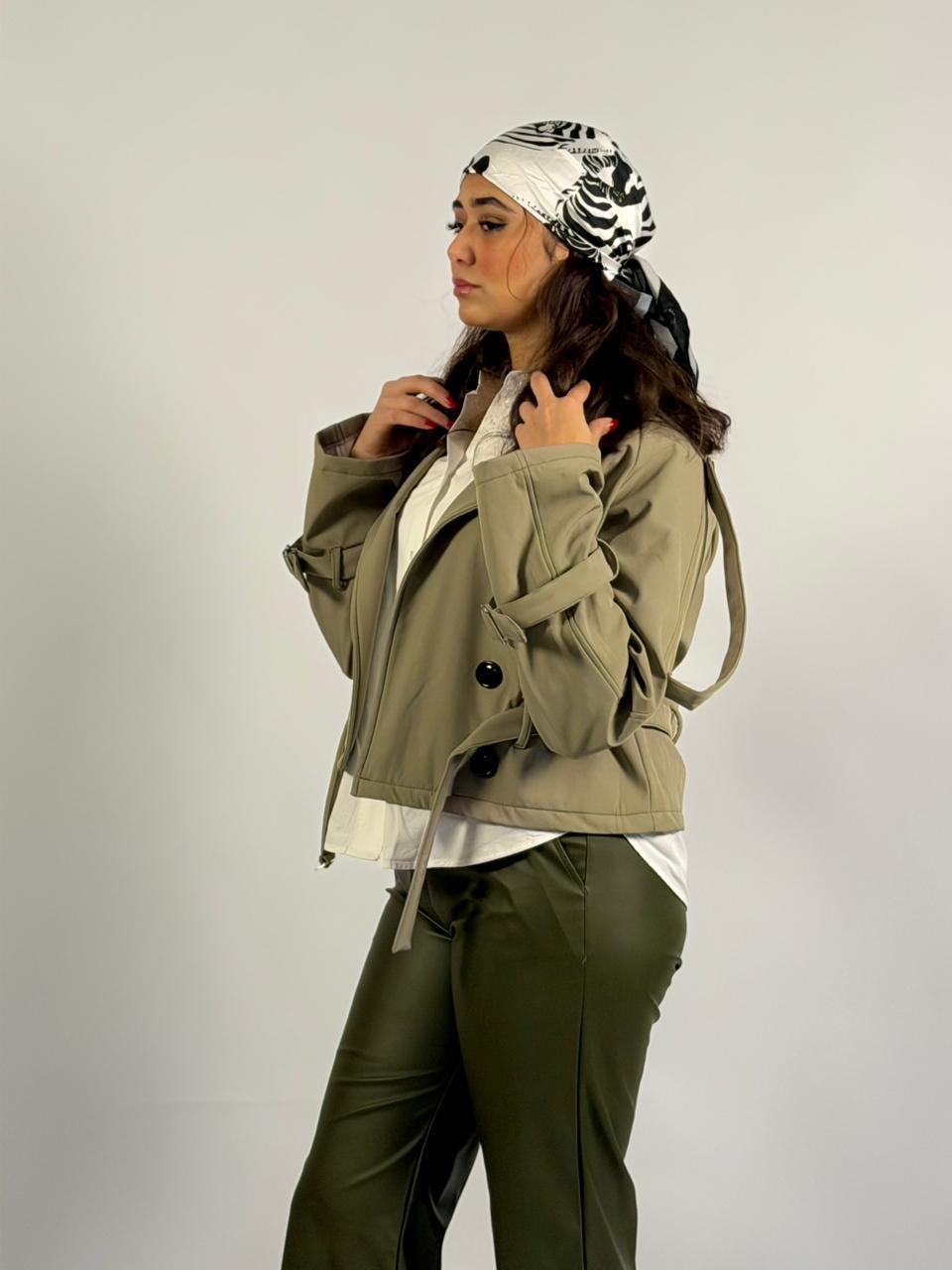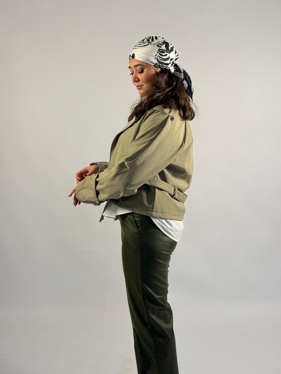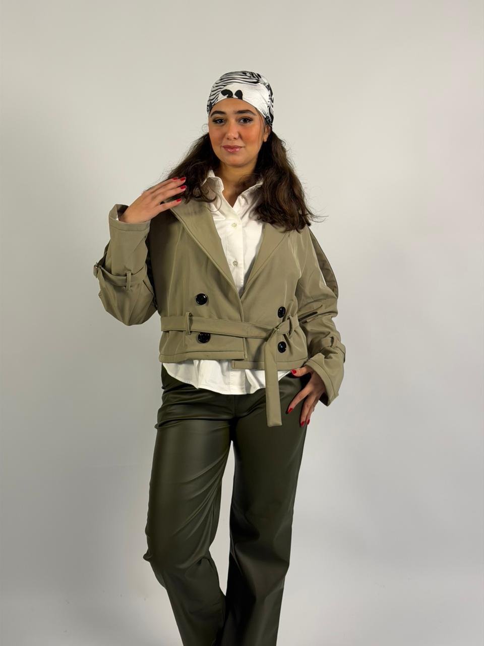 Beige Cropped Double-Breasted Trench Jacket